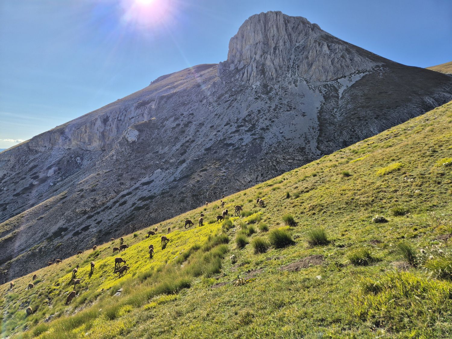 W Abruzji znajduje się najwyższe pasmo Apeninów - Gran Sasso d’Italia. Przez wielu nazywane „Śpiącym Gigantem”, gdyż z oddali ten ogromny masyw przypomina sylwetkę śpiącego człowieka - podobne skojarzenia jak z naszym Giewontem i „Śpiącym Rycerzem”. Trudno jednak nie zgodzić się z tym stwierdzeniem, gdyż najwyższy szczyt Corno Grande jest szóstym pod względem wybitności szczytem w Europie. Określenia gigantyczny czy ogromny odpowiednio pasują by opisać bryłę masywu widzianą z oddali. Sam masyw nie jest jednak trudno dostępny, a to za sprawą rozległego płaskowyżu Campo Imperatore. „Cesarskie Pole” bo tak należy tłumaczyć włoską nazwę, to wyżyna położona na znacznej wysokości (powyżej 1400 m n.p.m.) w samym sercu masywu Gran Sasso. Stanowi idealne miejsce do rozpoczęcia trekkingów, ale też sam w sobie oferuje niezapomniane krajobrazy – rozległe połoniny, pasące się owce i bydło, a to wszystko otoczone wysokimi szczytami. Nie bez powodu mówi się, że czas spędzony na płaskowyżu to przeniesienie się w inny zakątek świata. Stąd też porównanie do Małego Tybetu czy Dzikiego Zachodu. My wyruszymy na najwyższy szczyt Apeninów – Corno Grande, ale też wybierzemy się na trekking we wschodniej części masywu Gran Sasso, a płaskowyż Campo Imperatore będzie nieodłącznym elementem naszych wędrówek.